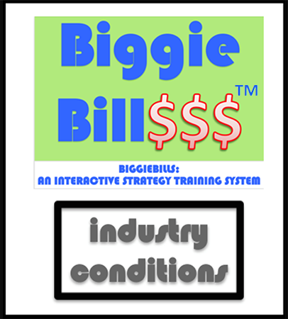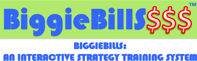 BiggieBills$$$™ is a patented interactive business strategy game. The game is played by 3-8 teams made up of 3 to 6 players each. Teams take on the role of an established business trying to gain the top position in its industry by being the first team to make a billion dollars!